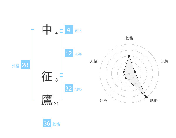 中 征鷹さんの総格は36画の3点!