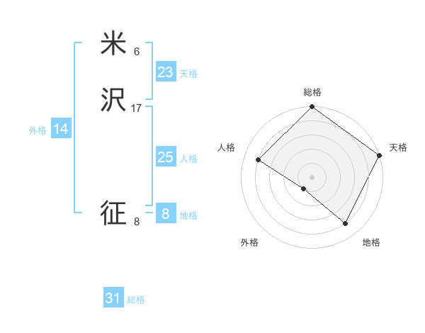 米沢 征さんの総格は31画の5点!