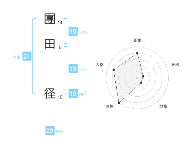 團田 径さんの外格は24画の5点!