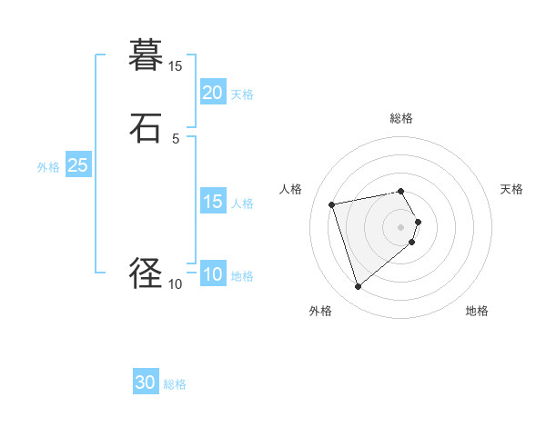 暮石 径さんの総格は30画の2点!
