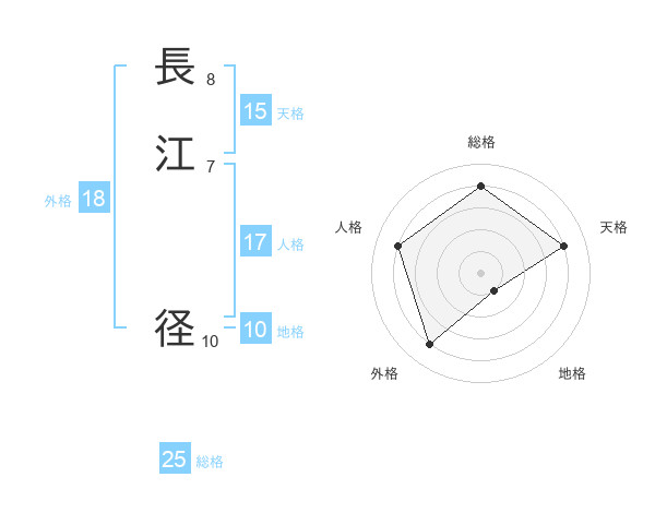 長江 径さんの総格は25画の4点!