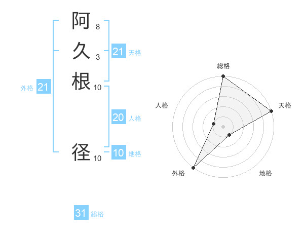 阿久根 径さんの天格は21画の5点!