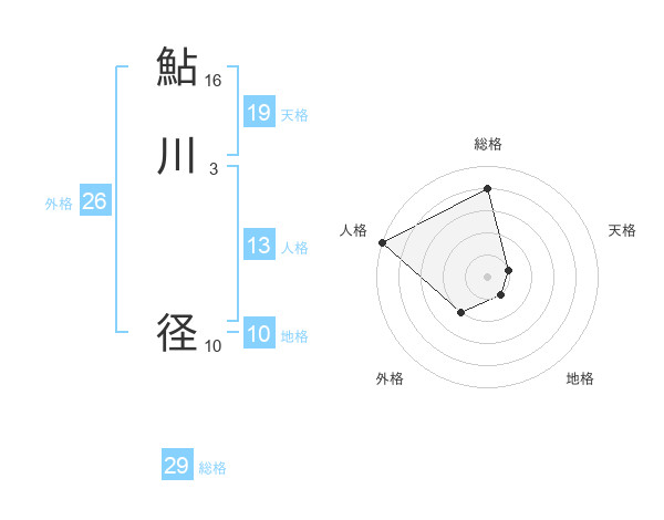 鮎川 径さんの総格は29画の4点!