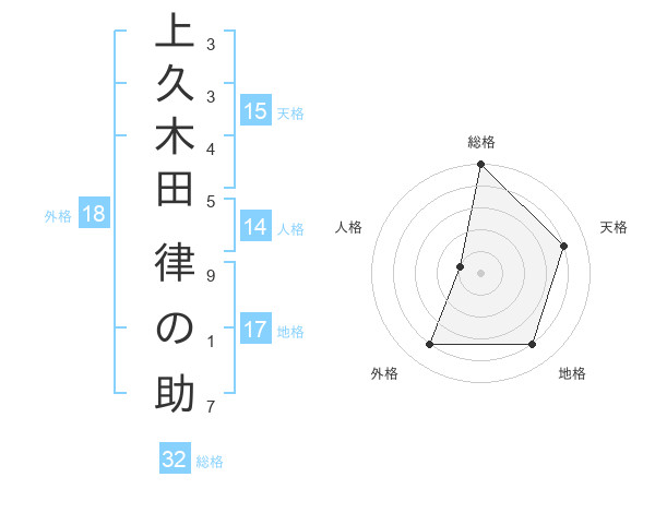 上久木田 律の助さんを姓名の画数から五運を鑑定