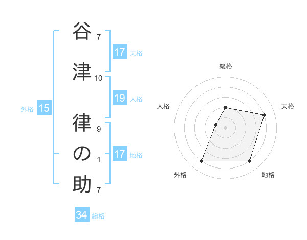 谷津 律の助さんを姓名の画数から五運を鑑定