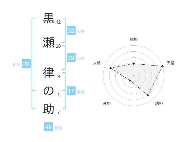 黒瀬 律の助さんを姓名の画数から五運を鑑定