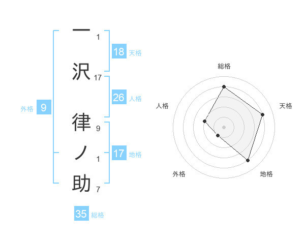 一沢 律ノ助さんを姓名の画数から五運を鑑定