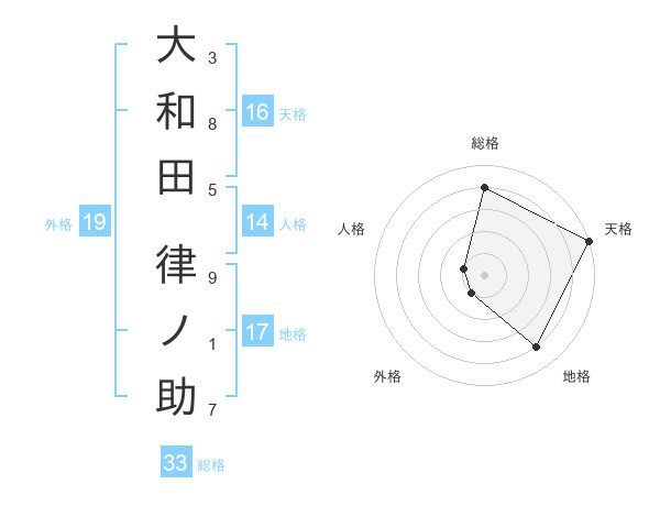 大和田 律ノ助さんの天格は16画の5点