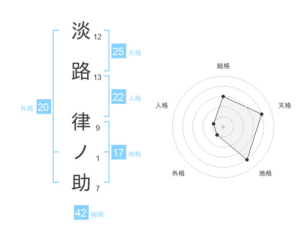 淡路 律ノ助さんを姓名の画数から五運を鑑定
