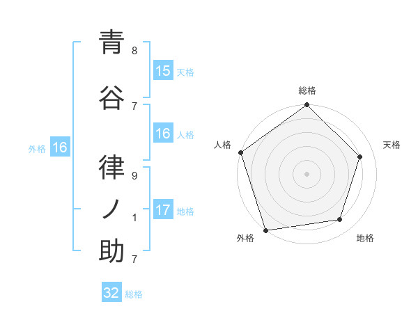 青谷 律ノ助さんを姓名の画数から五運を鑑定