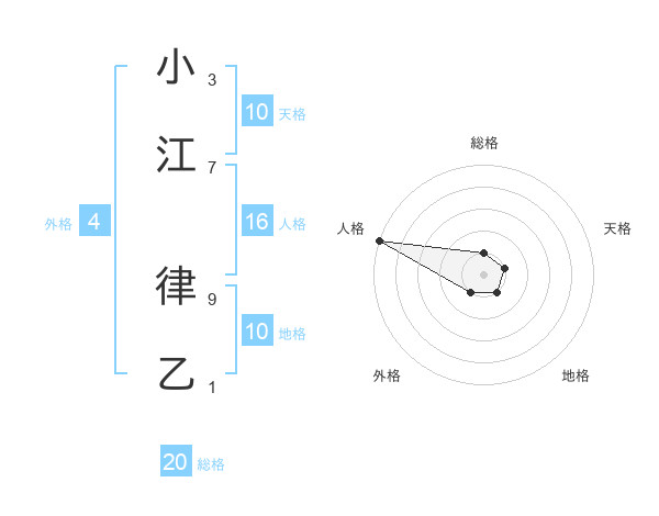 小江 律乙さんの総格は20画の1点!