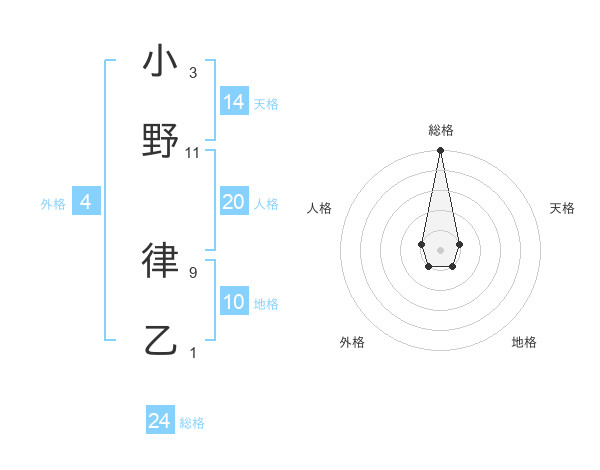 小野 律乙さんの総格は24画の5点!