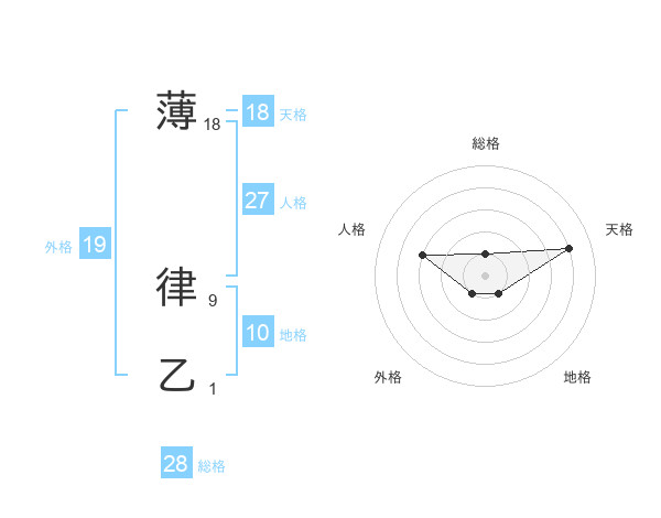 薄 律乙さんの天格は18画の4点!