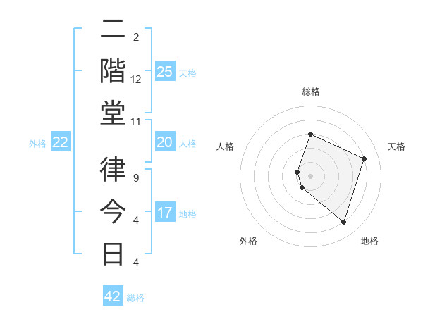 二階堂 律今日さんを姓名の画数から五運を鑑定
