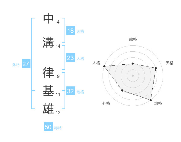 中溝 律基雄さんを姓名の画数から五運を鑑定