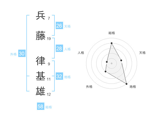 兵藤 律基雄さんを姓名の画数から五運を鑑定