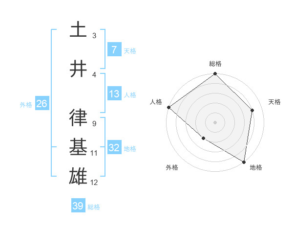 土井 律基雄さんの総格は39画の5点!