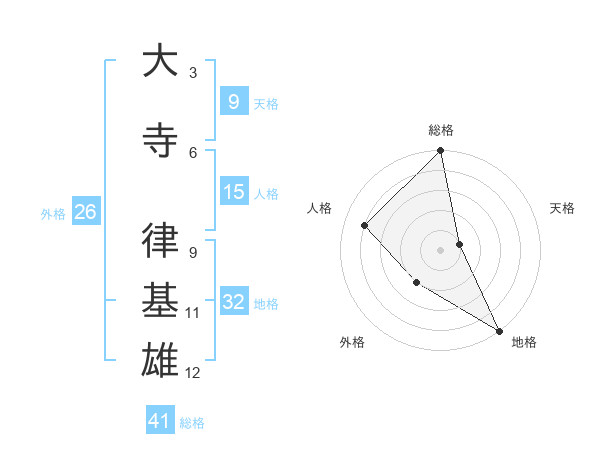 大寺 律基雄さんを姓名の画数から五運を鑑定