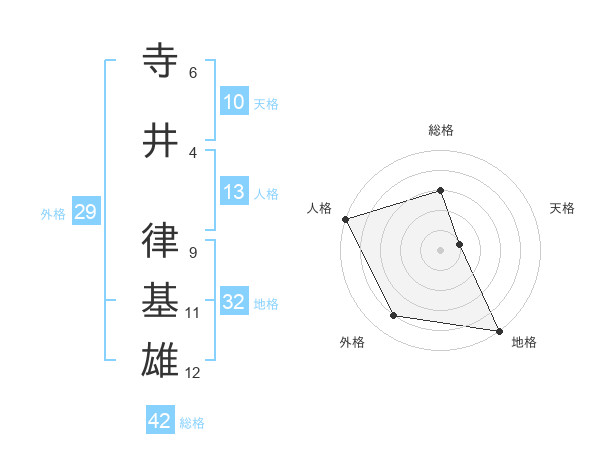 寺井 律基雄さんの総格は42画の3点!