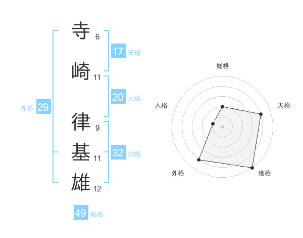 寺崎 律基雄さんを姓名の画数から五運を鑑定
