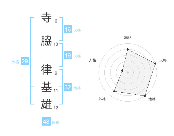 寺脇 律基雄さんを姓名の画数から五運を鑑定