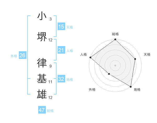 小堺 律基雄さんの総格は47画の5点!