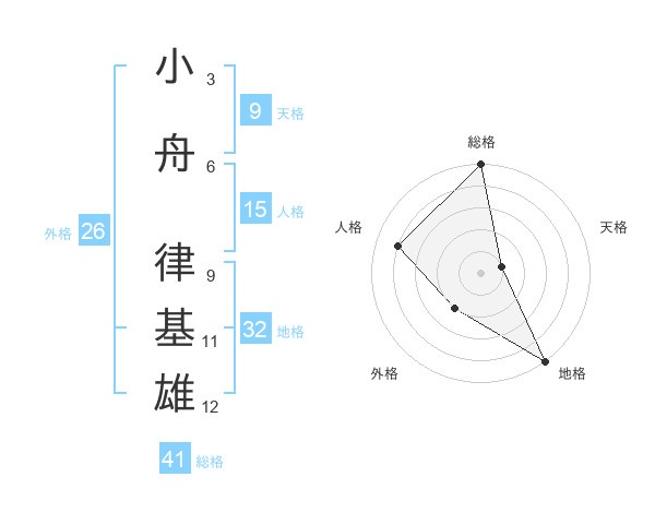 小舟 律基雄さんの総格は41画の5点!
