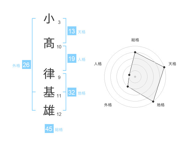 小髙 律基雄さんを姓名の画数から五運を鑑定