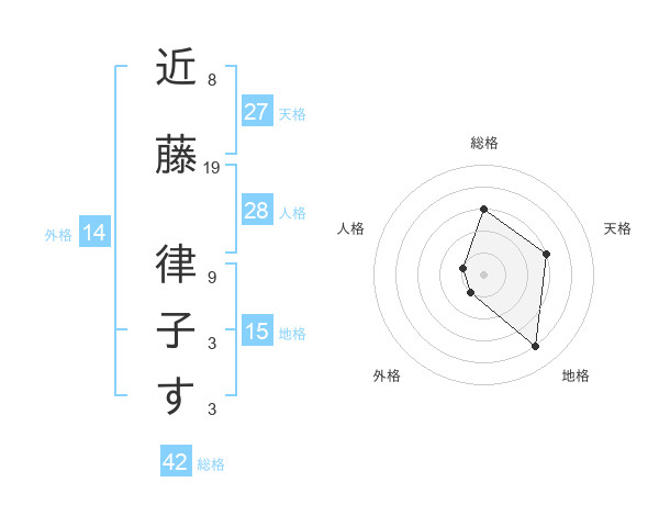 近藤 律子すさんを姓名の画数から五運を鑑定