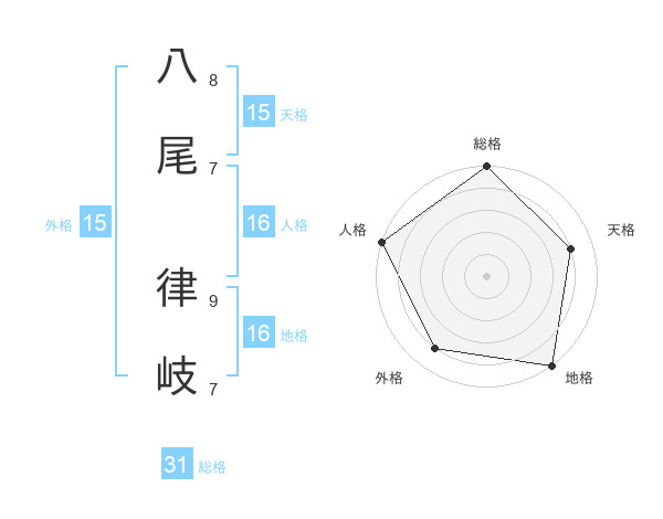 八尾 律岐さんの総格は31画の5点!