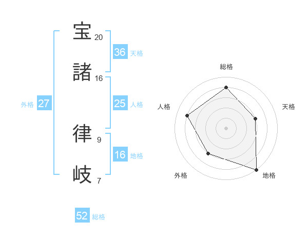 宝諸 律岐さんの総格は52画の4点!