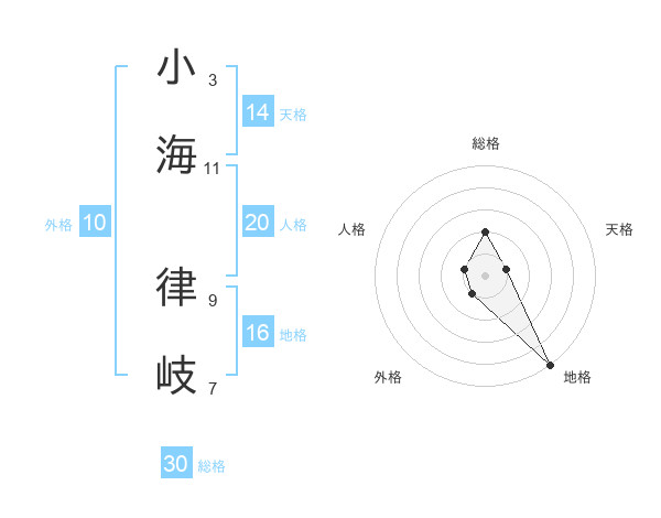 小海 律岐さんの総格は30画の2点!