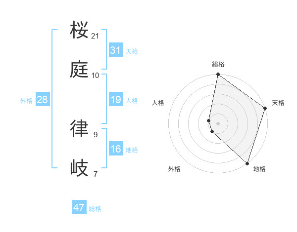 桜庭 律岐さんの総格は47画の5点!