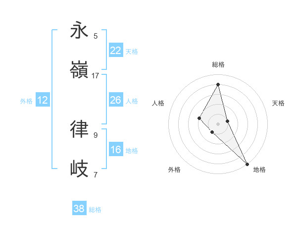 永嶺 律岐さんの総格は38画の4点!