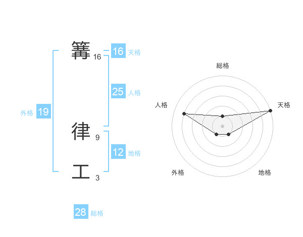 篝 律工さんの天格は16画の5点!