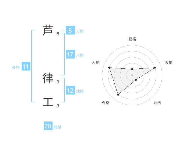 芦 律工さんの総格は20画の1点!