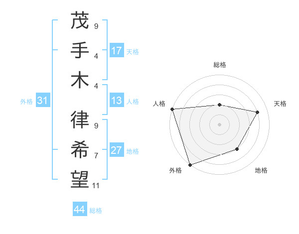 茂手木 律希望さんを姓名の画数から五運を鑑定