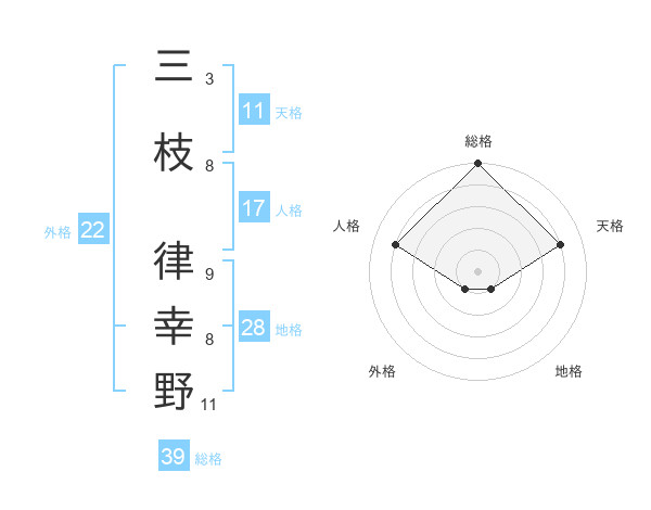 三枝 律幸野さんを姓名の画数から五運を鑑定