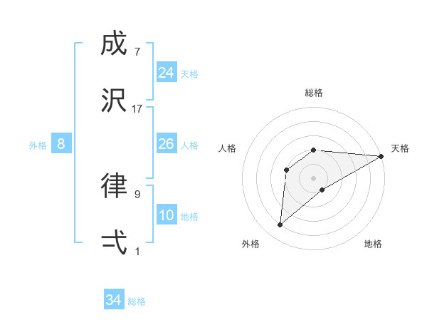 成沢 律弌さんを姓名の画数から五運を鑑定