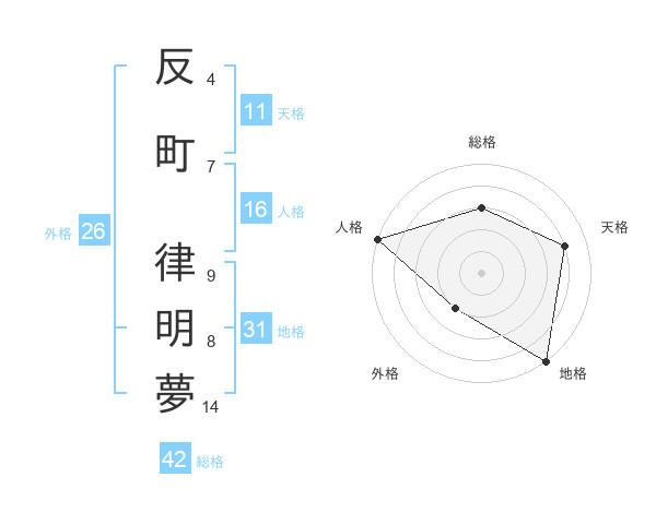 反町 律明夢さんを姓名の画数から五運を鑑定