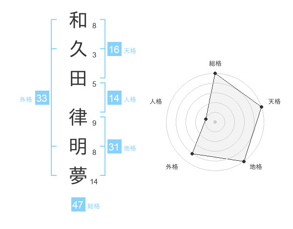 和久田 律明夢さんを姓名の画数から五運を鑑定