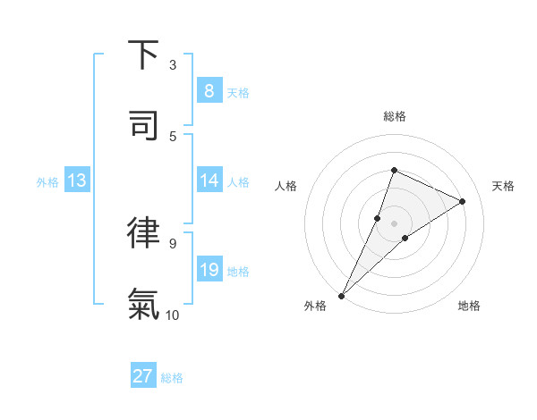 下司 律氣さんの外格は13画の5点!