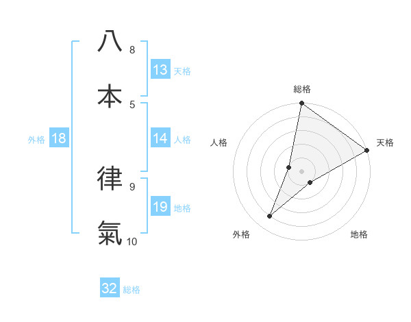 八本 律氣さんの天格は13画の5点!