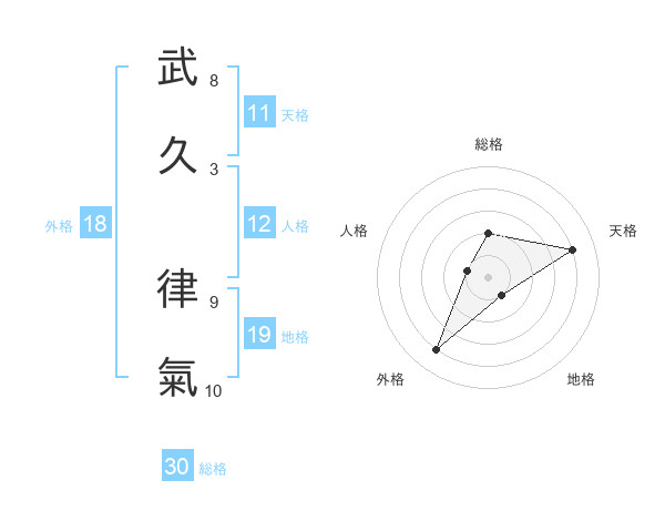 武久 律氣さんの総格は30画の2点!