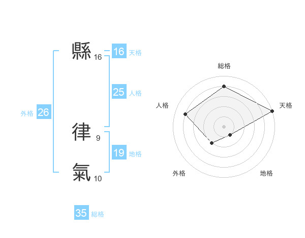 縣 律氣さんの天格は16画の5点!
