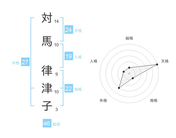 対馬 律津子さんの天格は24画の5点!