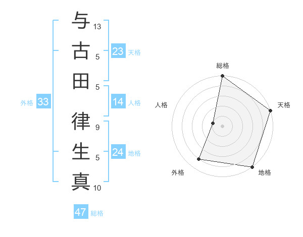 与古田 律生真さんを姓名の画数から五運を鑑定