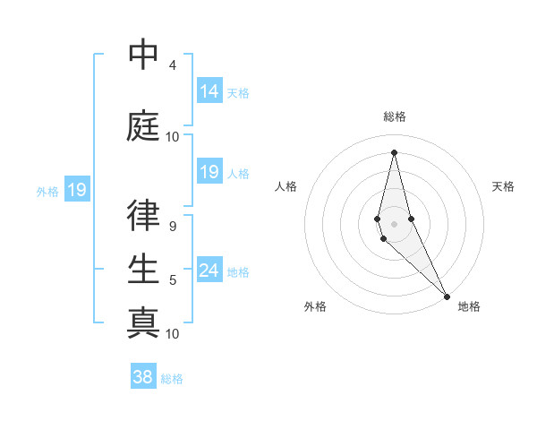 中庭 律生真さんを姓名の画数から五運を鑑定