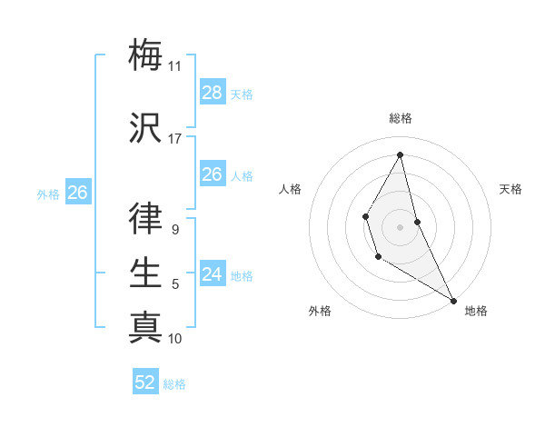 梅沢 律生真さんを姓名の画数から五運を鑑定