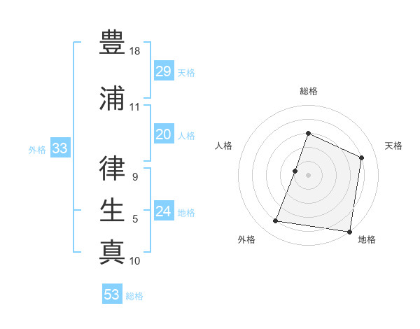 豊浦 律生真さんを姓名の画数から五運を鑑定